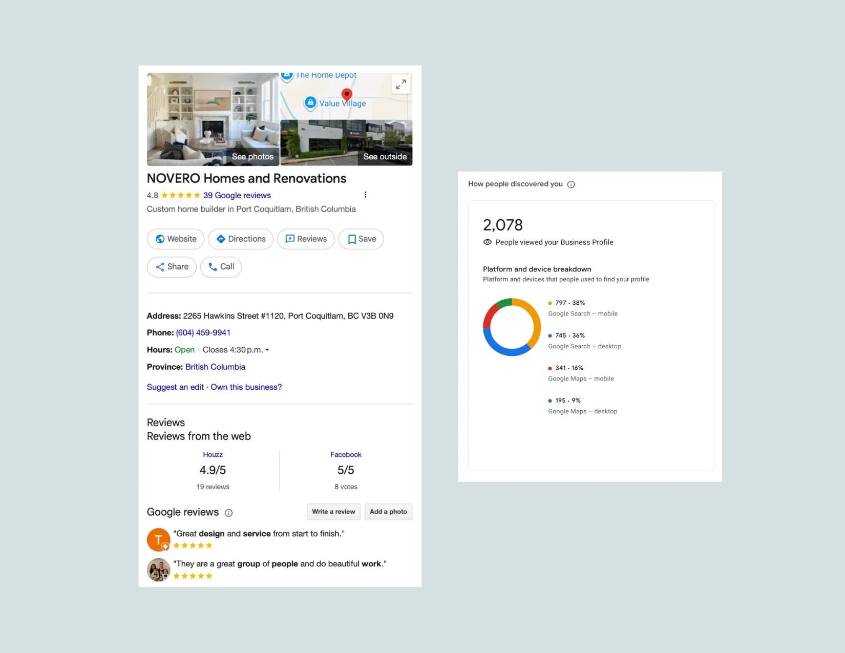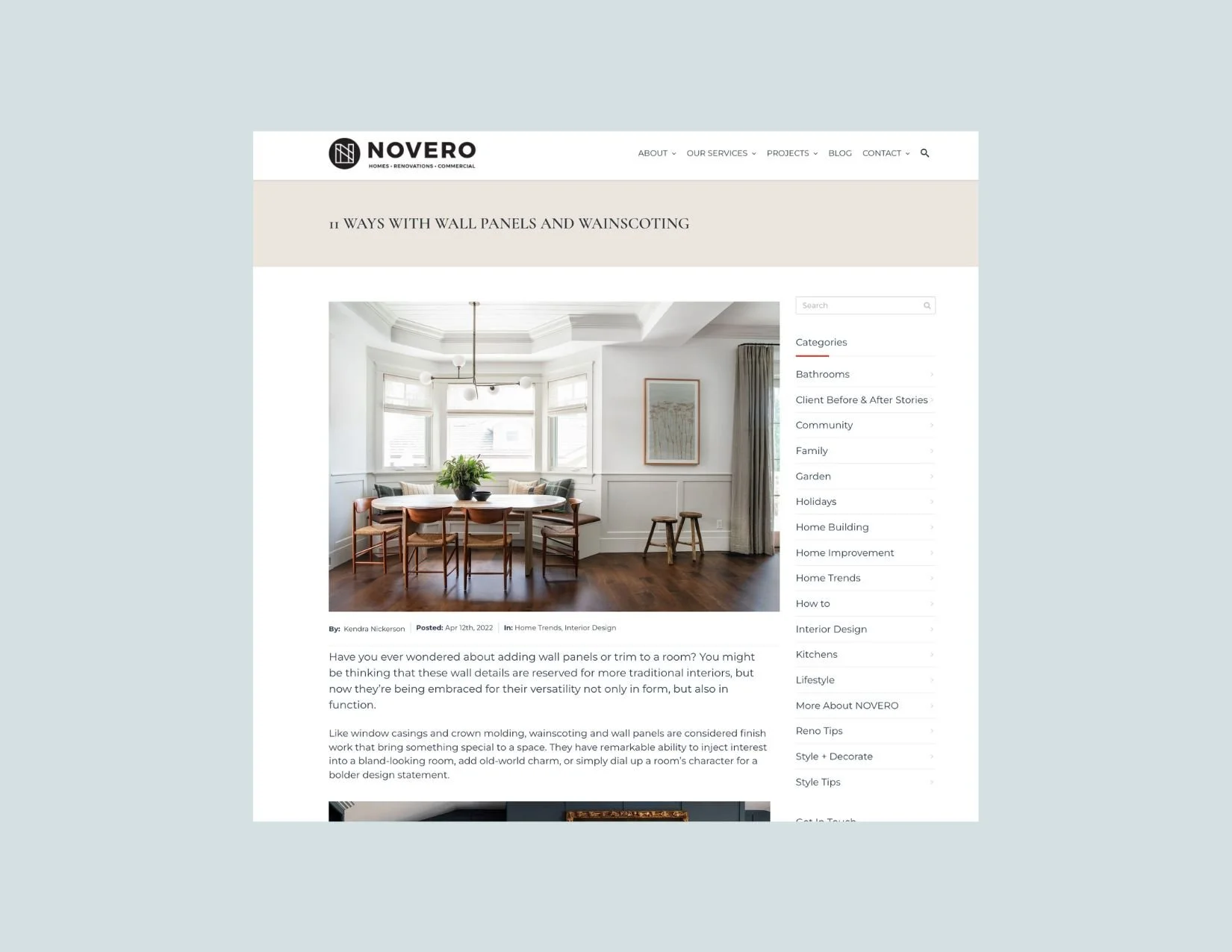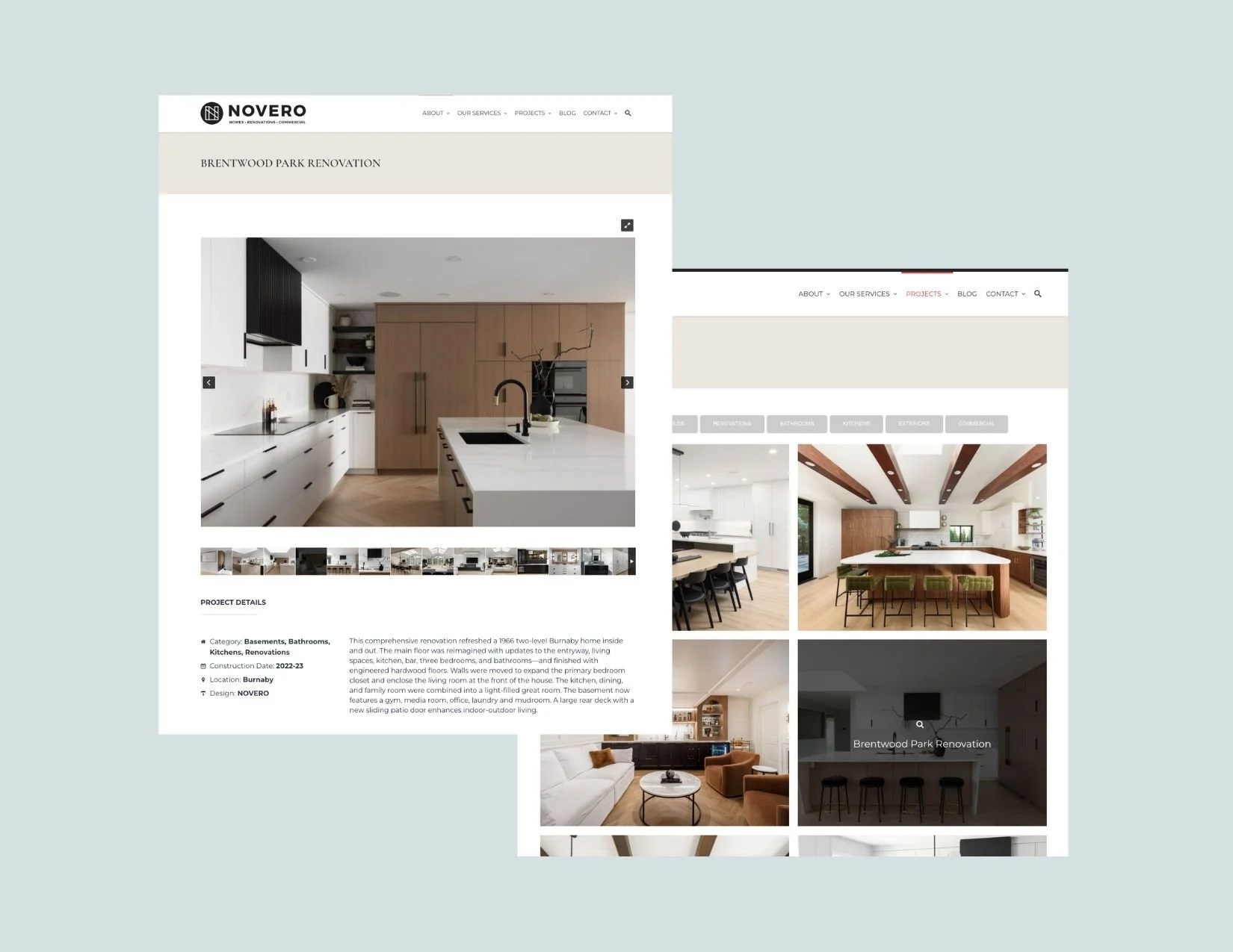 Family-owned and based in the Lower Mainland, NOVERO Homes & Renovations specializes in residential renovations, new builds, and interior design. I’ve supported their marketing since 2016, from a full rebranding and awareness campaign, to ongoing content marketing and SEO.